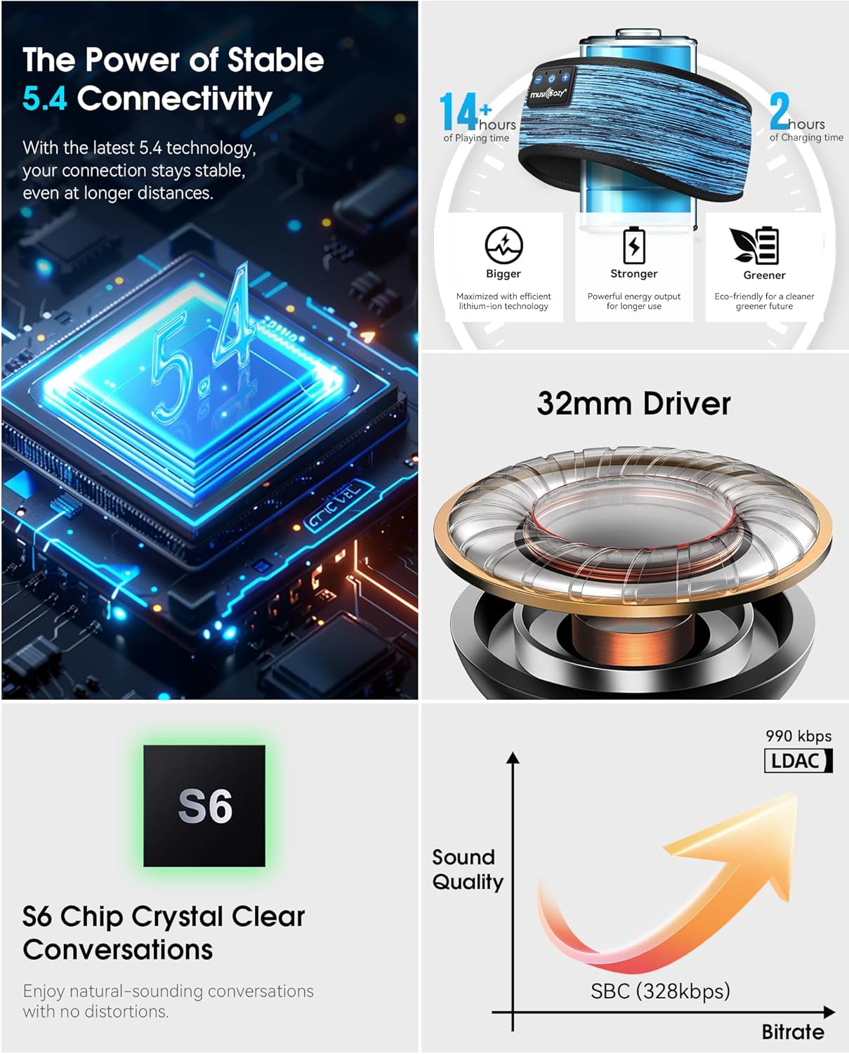 MUSICOZY Sleep Headphones Bluetooth 5.4 Headband, Wireless Music Sleeping Mask Headphones Earbuds Earphones Sweatproof for Women Mom Sports Workout Running Jogging Yoga Cool Gadgets Unique Gifts