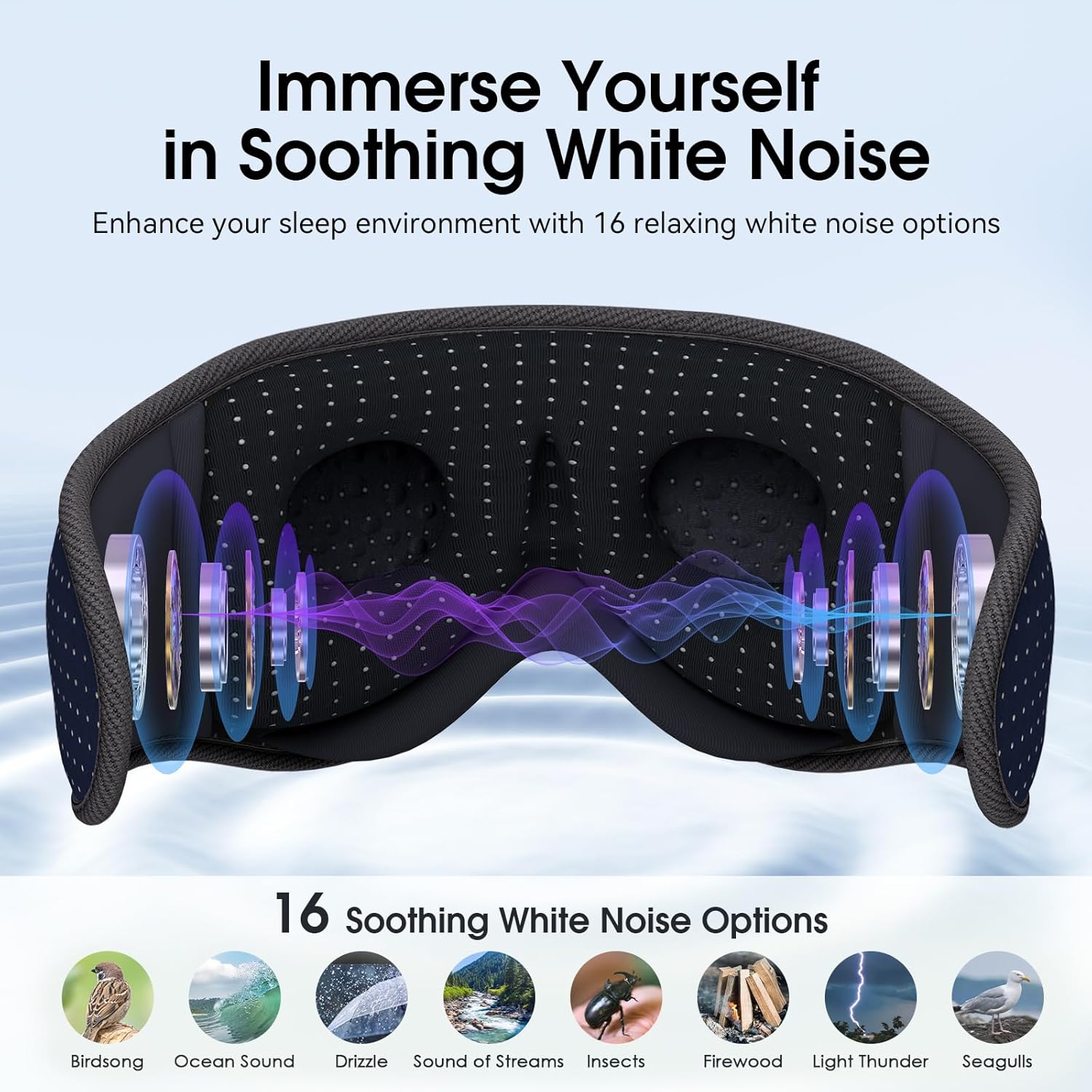 MUSICOZY White Noise Sleep Mask Headphones with 16 Soothing Sounds, Bluetooth Sleep Mask 3D Wireless Music Sleeping Headphones for Side Sleeper